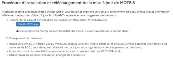 La version du thésaurus est liée à la version de BCDI : par exemple, seuls les abonnés à SOLDOC pour l'année scolaire en cours se verront proposer la mise à jour de Motbis.